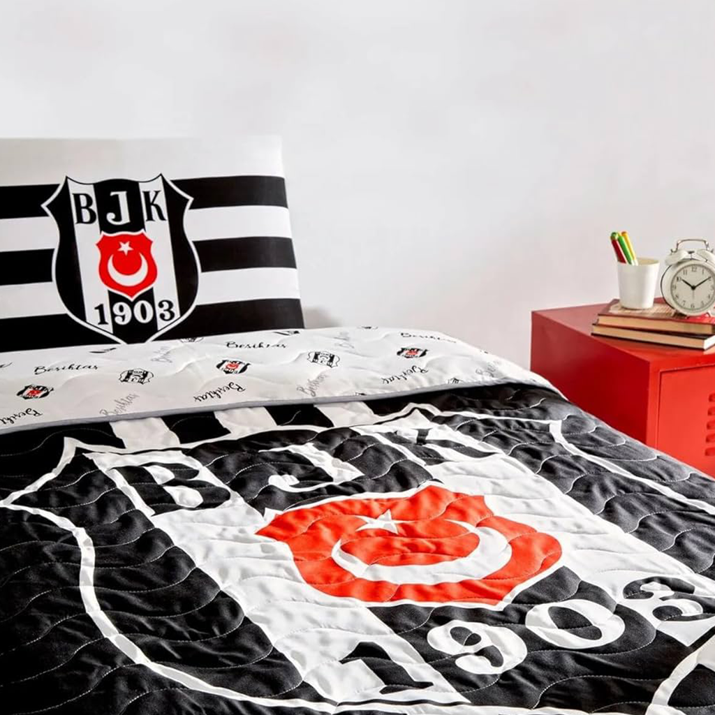 Taç Lisanslı Beşiktaş Stripe Tek Kişilik Yatak Örtüsü Seti